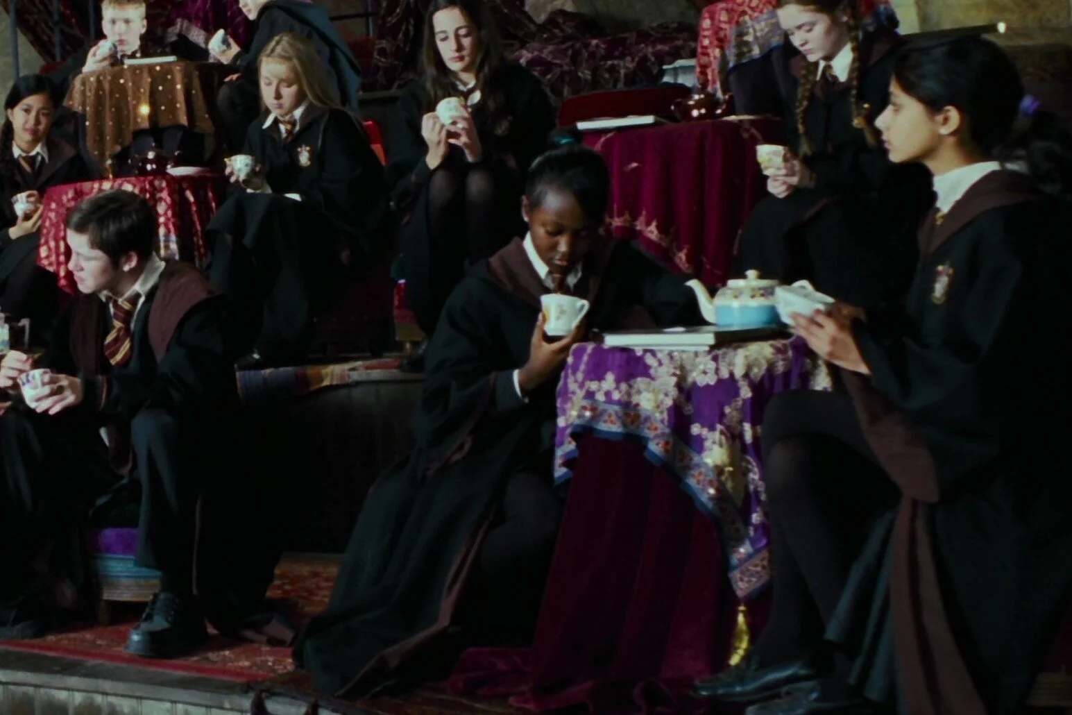 The Divination Scene was supposed to include some moments and dialogue from the book. The script includes Professor Trelawney saying to Parvati that she needs to beware a red-haired man, foreshadowing her miserable Yule Ball date with Ron. She also predicts that someone will leave the class forever in spring. Professor Trelawney foretells that Neville will break his teacup and therefore asks him to take a blue cup instead of a pink since they are her favourite.
